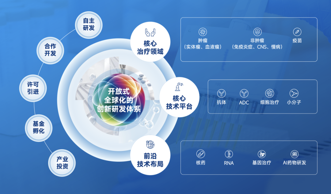 截至2024年底,公司主要在研创新药及生物类似药项目已超过70项(按适应症计算),细分为:自研小分子创新药23项、自研生物创新药19项、许可引进创新药21项、自研生物类似药12项。这一庞大的管线矩阵覆盖了抗体、抗体偶联药物(ADC)、细胞与基因治疗(CGT)及小分子四大核心技术平台。