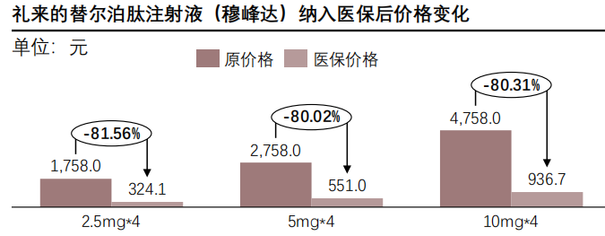 从外部竞争看,司美格鲁肽中国核心专利到期临近,众多国产生物类似药蓄势待发,且信达生物等新玩家入局,市场竞争主体增多。同时,替尔泊肽获批及入医保时间晚于司美格鲁肽,礼来需以降价策略抢占市场份额。