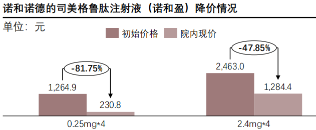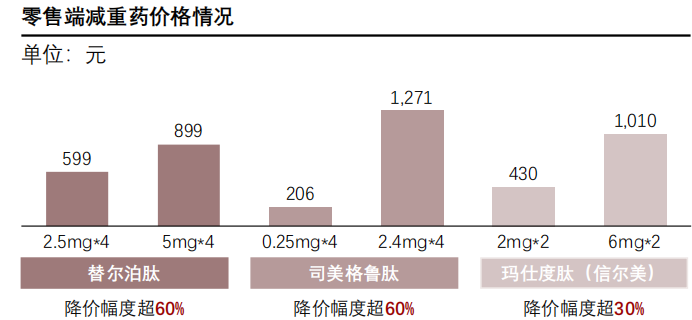 0.5mL:2.5mg*4/预充注射笔零售价为1758元/盒(4周用量),不同电商平台价格有浮动,大致在1700~2500元/盒区间。