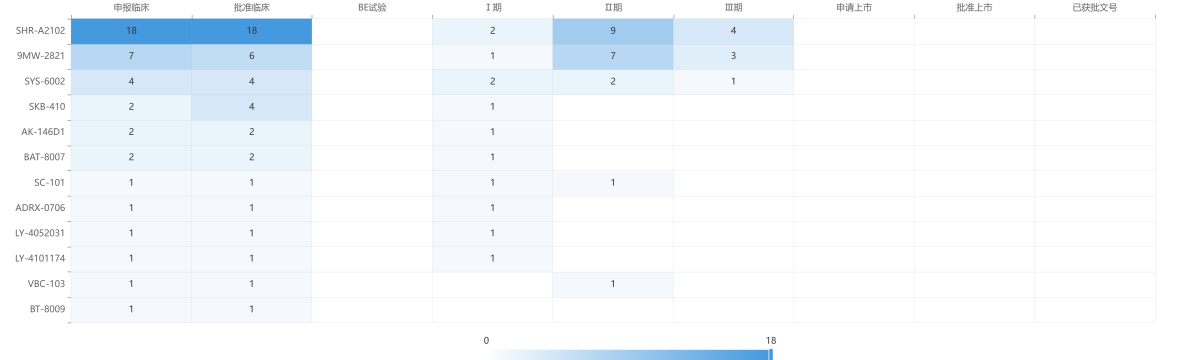 但由于诱人的市场前景,国内企业的跟进速度极快,竞争已趋于白热化。摩熵医药数据显示,迈威生物的9MW2821与医药龙头恒瑞医药的SHR-A2102均已大步跨入III期临床阶段。