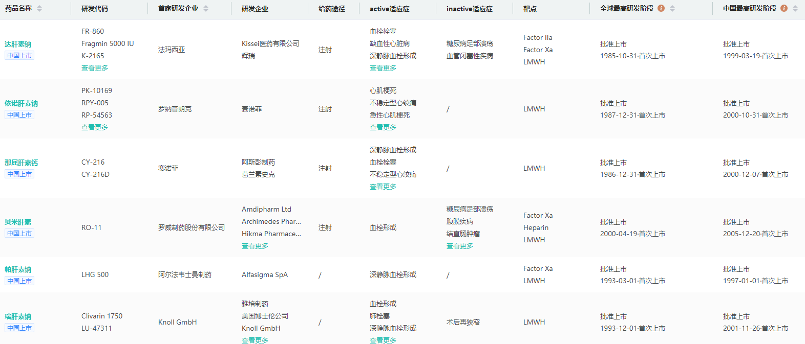 国内获批上市的低分子肝素药物查询