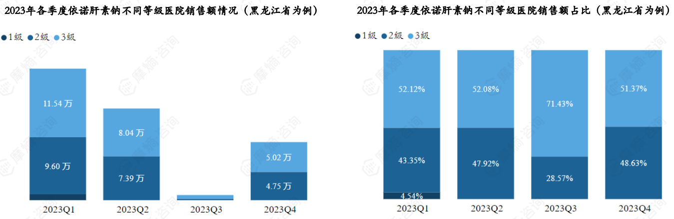 (3)依诺肝素钠各级医院市场分析(以黑龙江省为例)