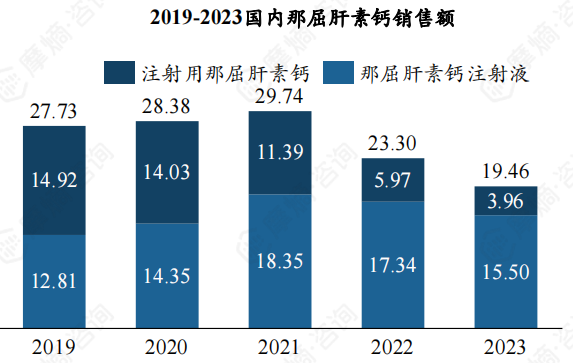 那屈肝素钙为阿斯彭研发,在国内市场以那屈肝素钙注射液和注射用那屈肝素钙两种剂型存在,其中那屈肝素钙注射液市场表现亮眼,其市场份额显著增长,已由2019年不足50%上升至2023年近80%。