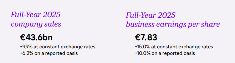 赛诺菲在2025年实现了436.26亿欧元的净销售额,按固定汇率计算增长9.9%。业务营业利润(BOI)增长11.9%至121.49亿欧元,BOI利润率提升了0.5个百分点至28.1%。