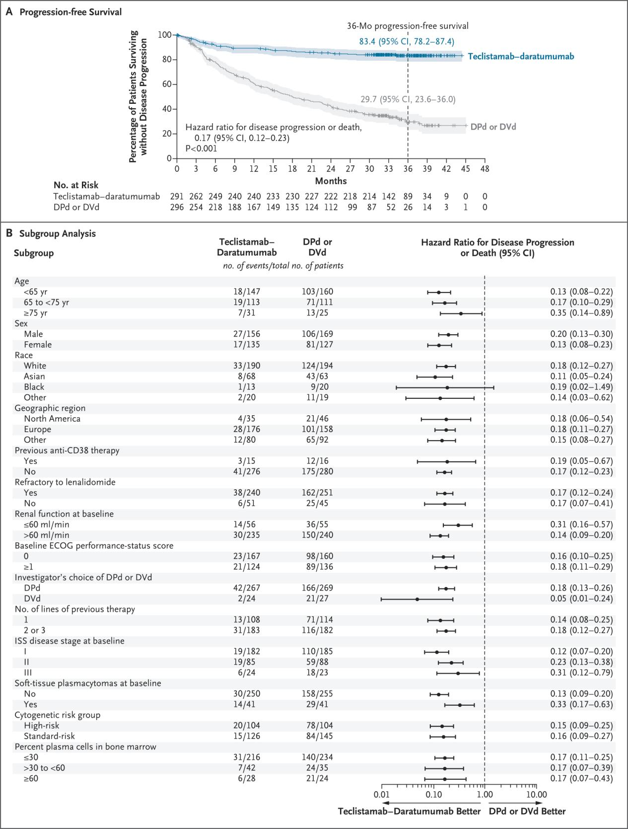 TECVAYLI ® 联合DARZALEX FASPRO ®在RRMM患者中位随访3年后,与标准治疗相比,RRMM患者的PFS显著改善。该结果于2025年12月在美国血液学学会( ASH )年会上作为一项突破性的口头报告发表,并同时发表在《新英格兰医学杂志》上。