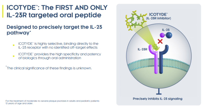 然而,真正引发行业地震的,是2026年3月18日获得FDA批准的新一代口服靶向肽 Icotyde(icotrokinra)。