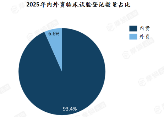 2025年临床试验登记中,内资企业占比达93.4%,外资企业仅占6.6%,本土药企在临床申报中占据核心地位。