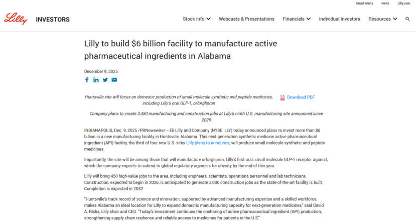 相比之下,礼来坚持最困难但质量上限最高的“绿地战略”,从零开始构建具备最高自动化标准的专属工厂网络。