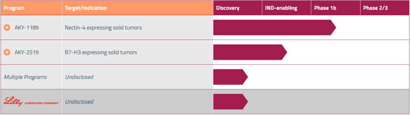 ① 结盟Aktis Oncology:礼来豪掷最高11亿美元的里程碑付款,利用Aktis独有的微型蛋白(Miniprotein)放射性偶联物平台进行开发。该平台旨在克服全尺寸抗体穿透力差和短肽清除过快的缺陷,其先导项目AKY-1189靶向Nectin-4(在多种实体瘤中高表达),具备多适应症扩展潜力。
