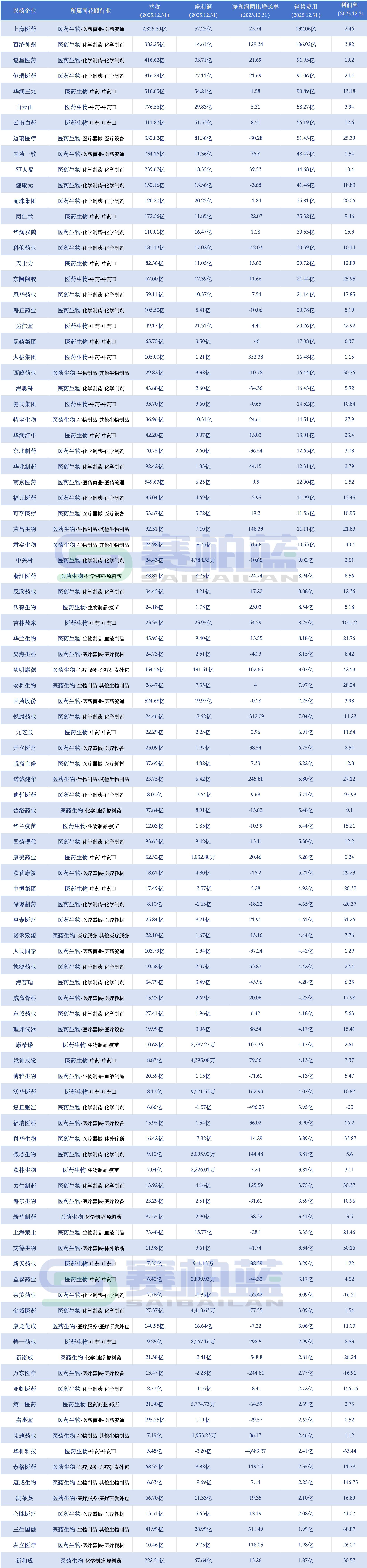 附:A股168家医药企业业绩表现(数据来源:同花顺问财;数据统计截至2026年4月18日)