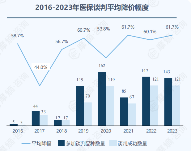 面对国内有限的利润空间,全球化发展已成为中国医药行业的必然选择。在医保降价的背景下,自2016年至2023年,我国进行了8轮医保谈判,虽然每年的降价幅度有所波动,但总体保持在50%-60%之间。