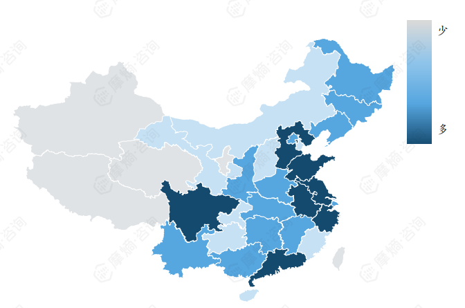 截至2023年底,全国共有8460张药品生产许可证。各类药品生产企业主要分布在东部沿海发达地区以及中部地区。西部尤其是西北部地区生产企业数量较少。