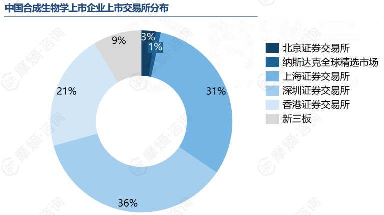 从股票市场分布来看,主板66家、创业板20家、科创板19家、三板10家、纳斯达克1家。上市交易所分布来看,主要分布在深圳证券交易所(42家)、上海证券交易所(36家)、香港证券交易所(24家)。这些企业的上市,不仅为中国合成生物学领域注入了新的活力,也推动了行业的快速发展。