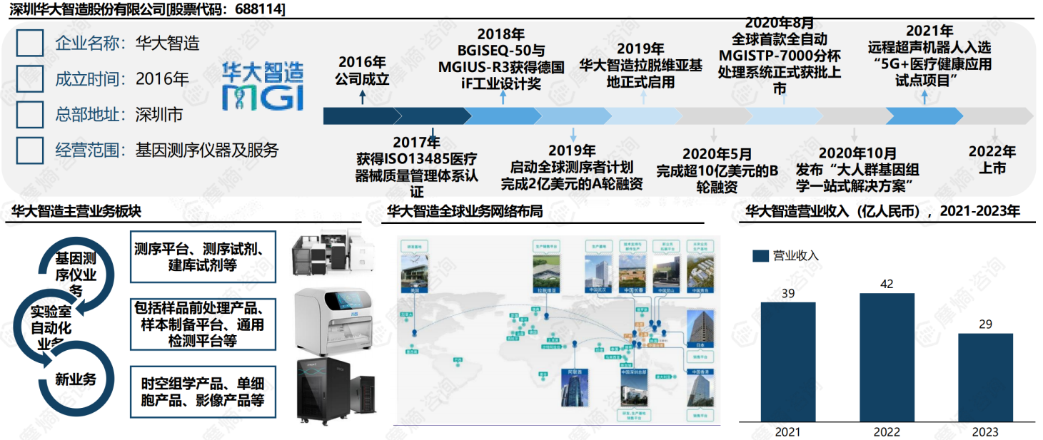 华大智造自上市以来备受关注,其业务聚焦基因测序仪业务、实验室自动化业务以及新业务三大板块。凭借在基因测序领域的技术创新和市场布局,华大智造正逐步在全球范围内提升其影响力,为精准医疗和精准健康等领域的发展做出重要贡献。