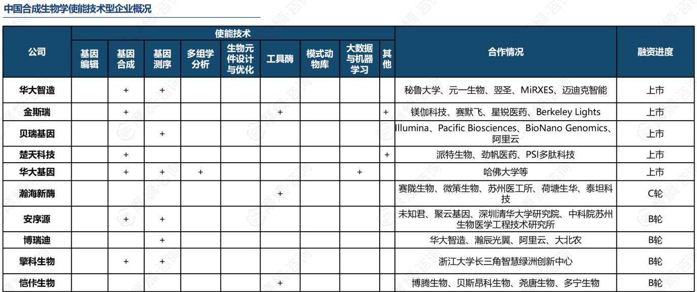 1. 中国合成生物学使能技术型企业,处于高速成长期