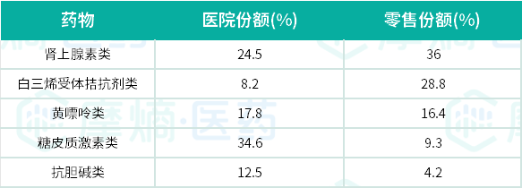 从药物分类来看,肾上腺素类药物在缓解类药物中独占鳌头,而控制类药物方面,糖皮质激素与白三烯受体拮抗剂在医院与零售市场表现出差异化分布。这些药物的销售占比,不仅映射了市场热度,也为药企的研发与市场布局提供了宝贵的数据指引。