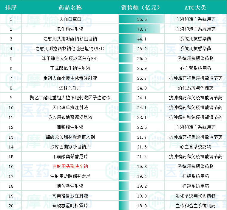 来源:摩熵医药(原药融云)全国医院销售数据库