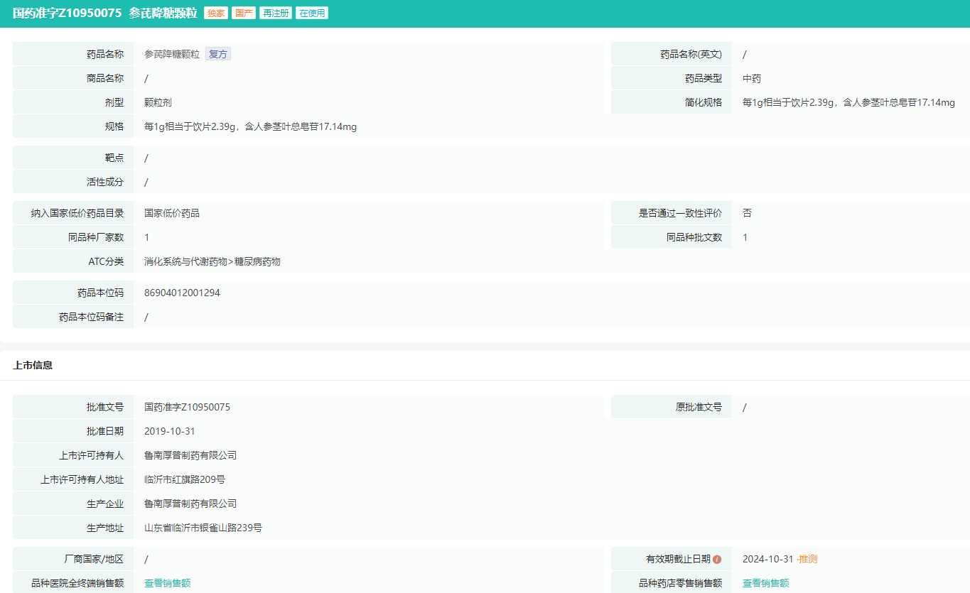 参芪降糖颗粒基本信息