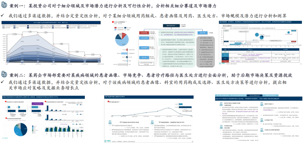案例二:某药企市场部需要对某疾病领域的患者画像、市场竞争、患者诊疗路径与医生处方进行全面分析,助于后期市场决策及资源投放