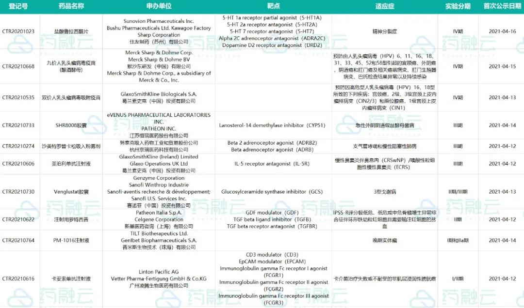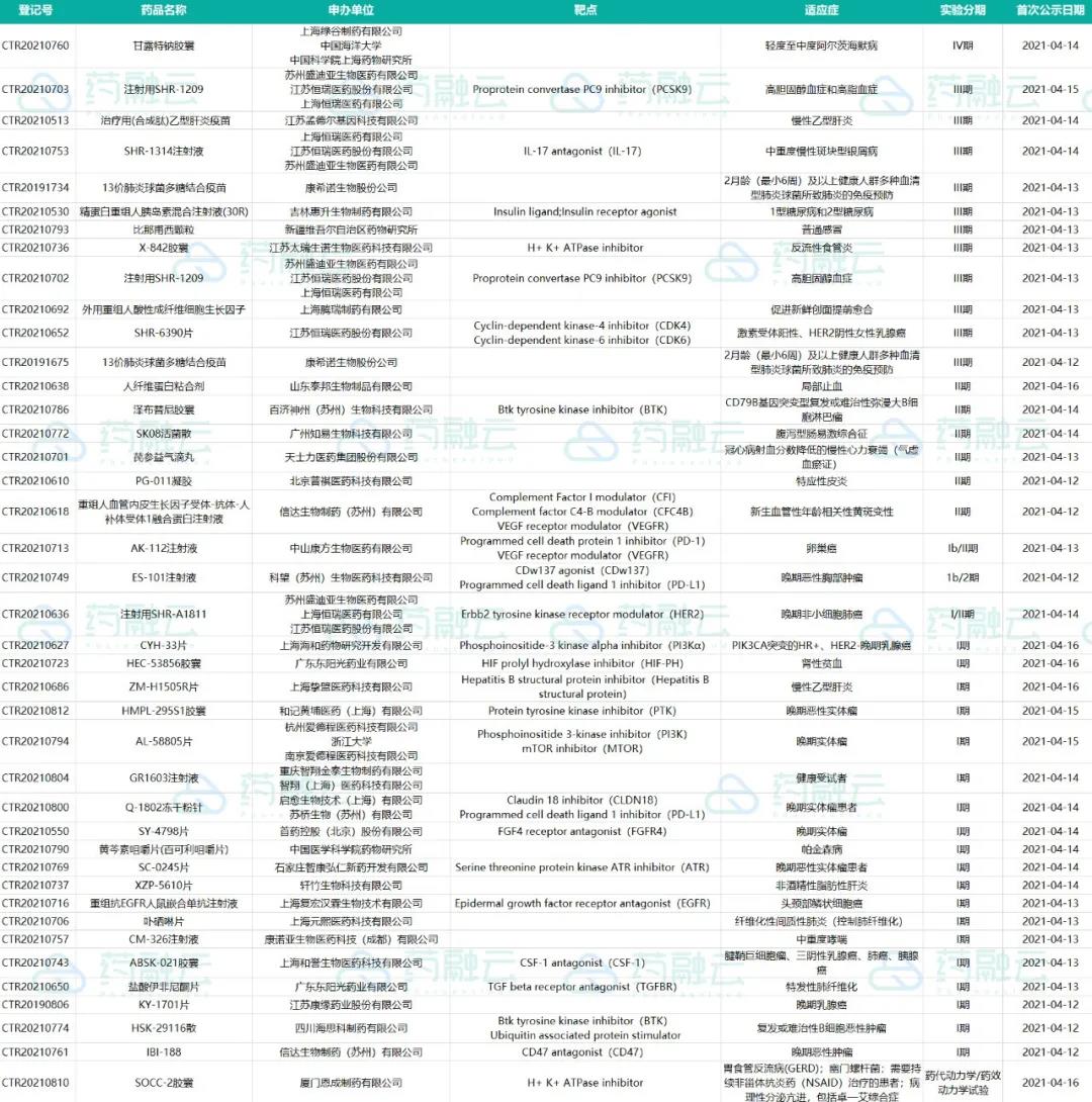 4月12日-4月18日,CDE新公示临床试验共计101项
