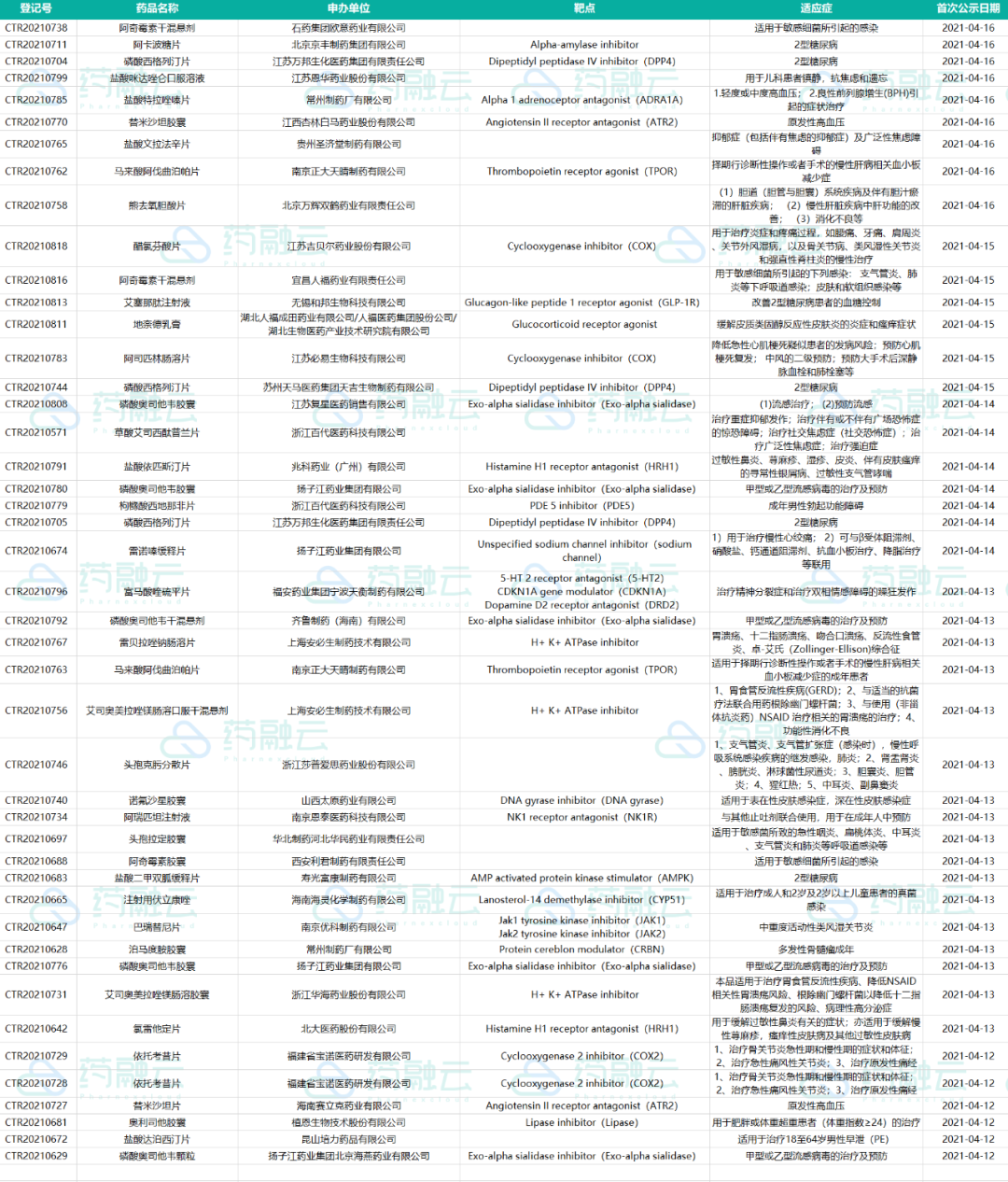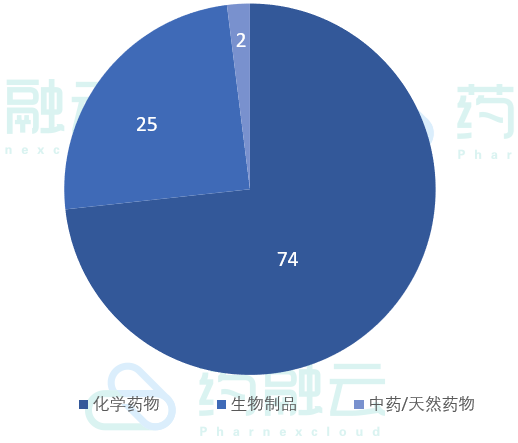 从药品类型来看,化学药物共计74项,生物制品25项,中药/天然药物2项
