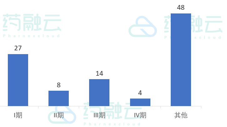 从临床分期来看,临床I期27项,临床II期8项,临床III期14项,临床IV期4项