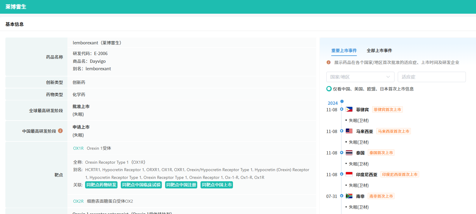想要解锁更多药物研发信息吗?查询摩熵医药(原药融云)数据库(vip.pharnexcloud.com/?zmt-mhwz)掌握药物基本信息、市场竞争格局、销售情况与各维度分析、药企研发进展、临床试验情况、申报审批情况、各国上市情况、最新市场动态、市场规模与前景等,以及帮助企业抉择可否投入时提供数据参考!注册立享15天免费试用!