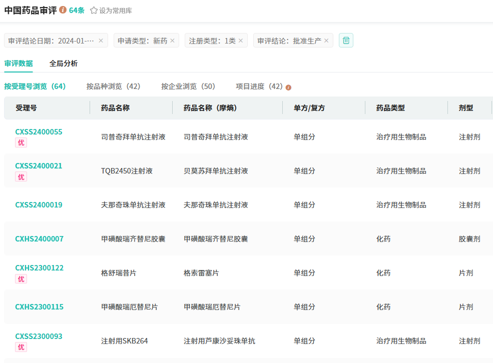 截图来源:摩熵医药中国药品审评数据库