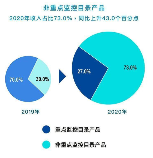 四环医药的非重点监控目录产品收益17.99亿元,较2019年同比巨幅增长108.2%,占2020年度总收益的73.0%,较2019年同比大幅上升43%,这也证明了四环医药在2020年各类新上市产品的重要市场占有率和销售能力。