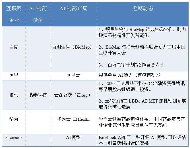 导读:近年来各方对医药领域的关注度都明显上升,特别是今年新冠疫情影响下,各方对医药领域的关注程度达到了新高点,另一方面,传统药物发现模式下,成功开发新药的难度越来越大;与此同时,互联网巨头们华为、BAT(百度、阿里、腾讯)、FB 等IT巨头,纷纷进军医药产业,在AI制药领域加大布局力度!AI药物研发,对传统的制药企业来说,机遇和挑战并存;如何与IT巨头合作共赢,也是摆在药企创始人/职业经理人面前的问题。IT巨头进军AI药物研发,对传统药企来说,是噩梦?还是救星?