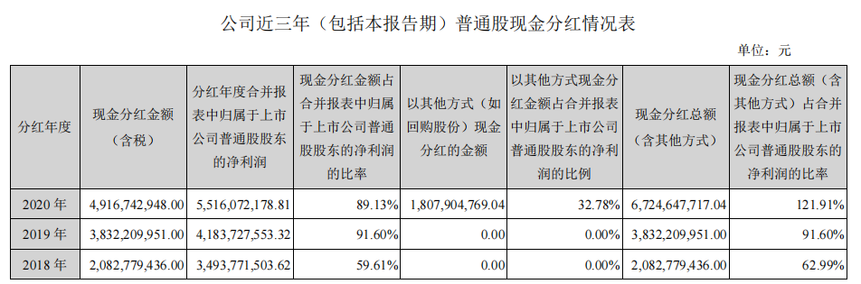 排名第一的是云南白药,2020年度分红方案:10派39,2020年度分红总额49.17亿元,2019年分红38.32亿,2018年分红20亿元,真土豪,自1993年上市以来,连续28年实现对股东分红。