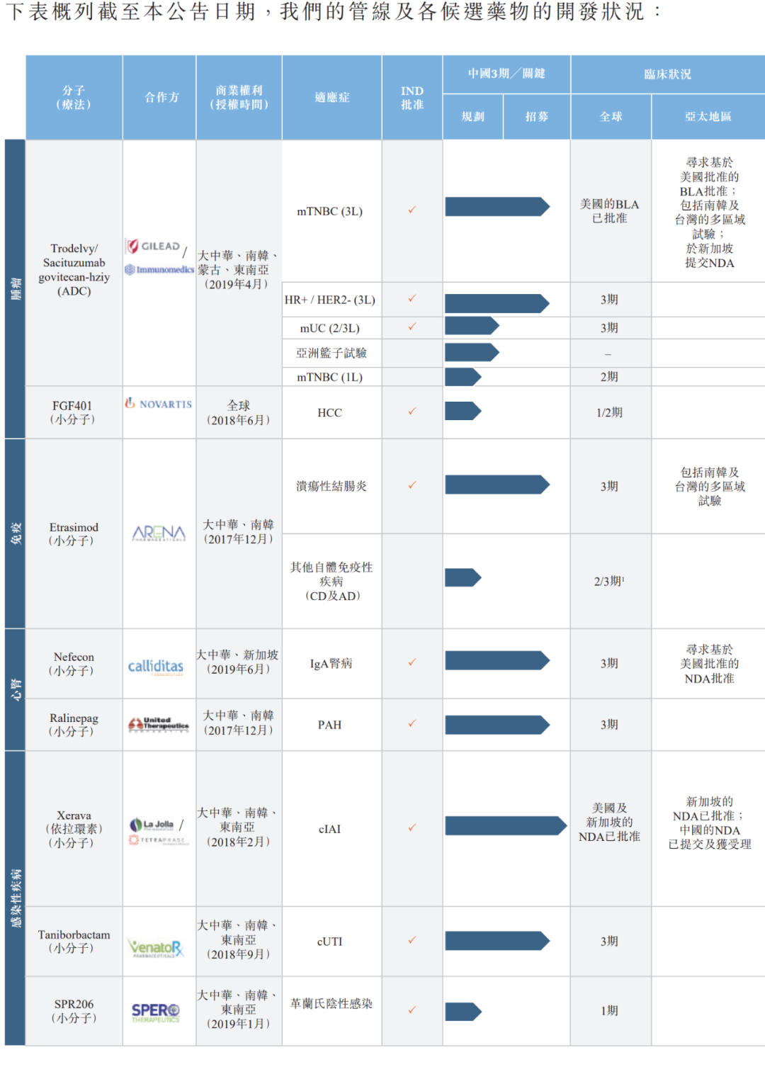 从云顶新耀的研发管线来看,公司所有引进的管线都是first in class和best in class类产品,对应的肿瘤、感染性疾病、免疫以及心肾四个领域,公司都已有相应的核心产品,分别为Trodelvy、eravacycline、etrasimod以及Nefecon。