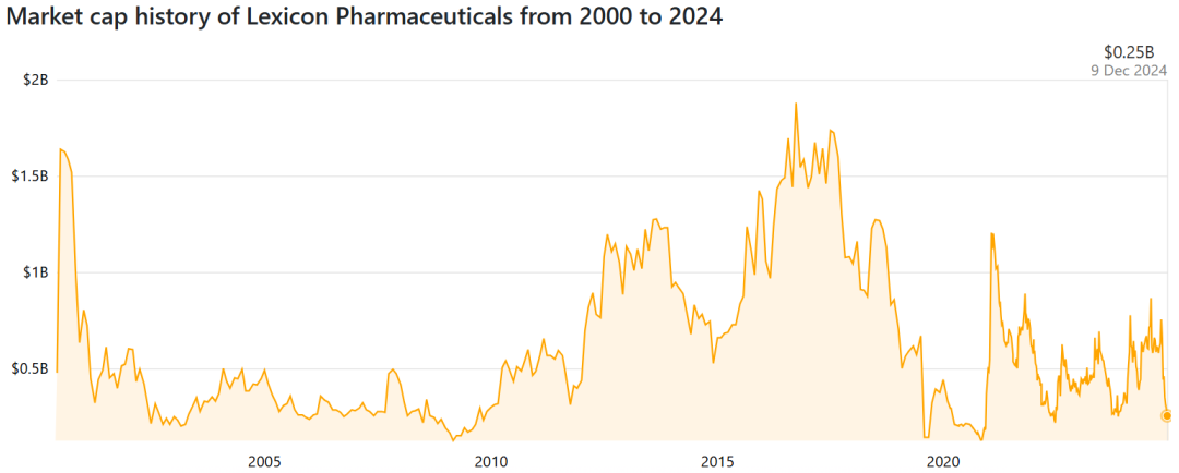 截至2024年9月30日,Lexicon拥有2.584亿美元的现金和投资;自1995年成立以来,累计赤字为19.3亿美元。截至2024年12月9日,该公司总市值为2.5亿美元。