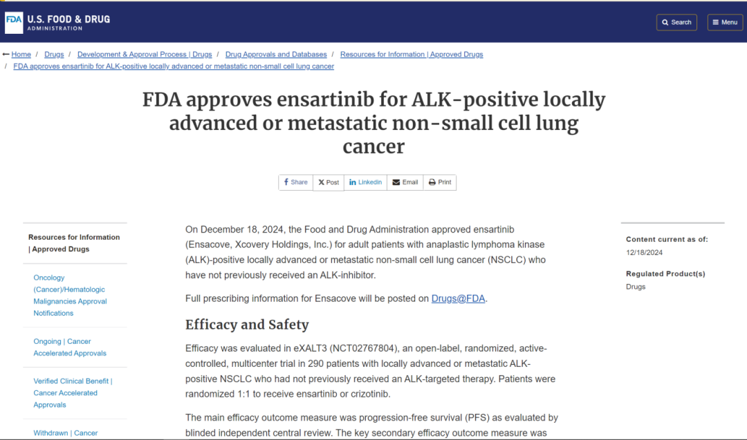 2024年12月19日,贝达药业和控股子公司Xcovery共同开发的全新的、拥有完全自主知识产权的创新药——盐酸恩沙替尼胶囊(商品名:贝美纳®),正式获得美国FDA批准上市,用于治疗ALK突变晚期非小细胞肺癌患者。截止目前,共有10款国产1类创新药在欧美日发达国家市场获批。