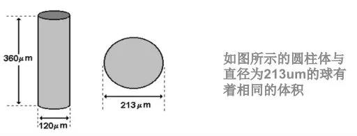 很多技术采用等效球或者等效圆的直径来表征粒度,因为对于圆球或者圆来说它们的直径可以用一个明确的数值来表征,从而大大方便了结果的表征。