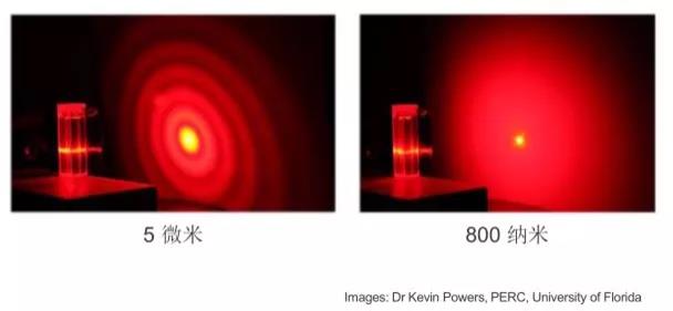 大颗粒的衍射光强对角度有比较强的依赖性,但随着粒径的减小,其衍射光对角度的依赖性明显降低,而几百纳米以下的颗粒的衍射光几乎分布在所有的角度!