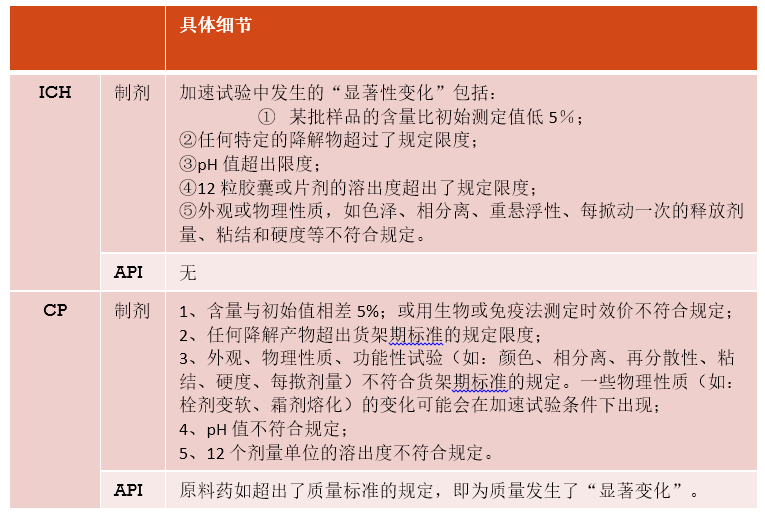 建议原料药采用与制剂相同的放置条件,将易于作比较和评价。如果在40±2℃/75%RH±5%的加速试验条件下放置6 个月后发生“明显变化”,则应在中间试验条件(如30±2℃/60%RH±5%)下作附加试验,这些资料均包括在注册申请中。