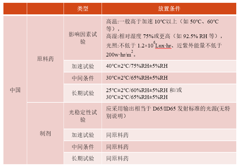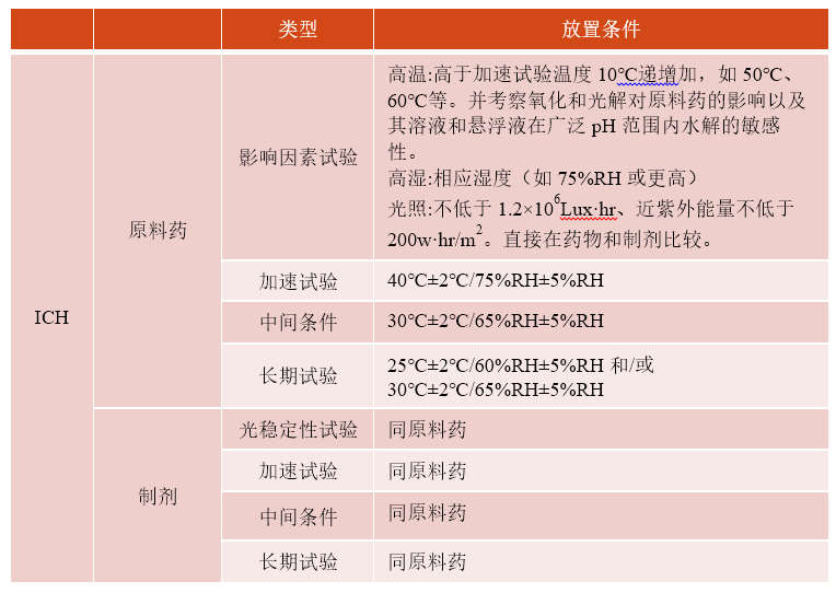 建议:原料药与制剂采用相同的放置条件进行考察。