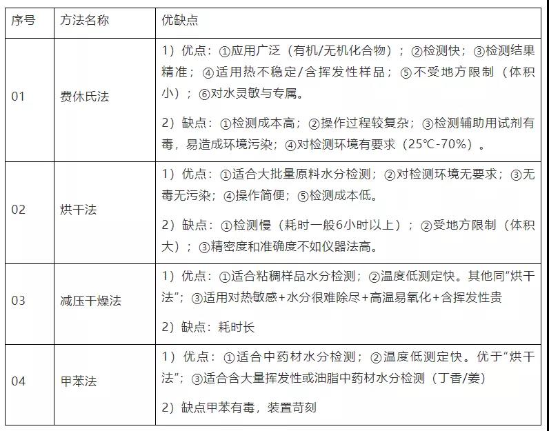 4.1烘干法:4.药学检测工作常用水分测定方法列比表:
