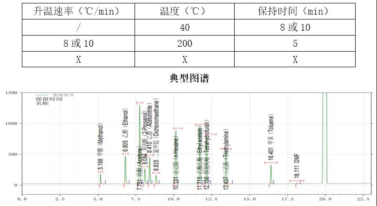 1.等温:对于溶剂个数小(1-3个),且各溶剂沸点差异不算很大,此时可选择等温法,比如50℃保持10-15分钟(适合残留溶剂检测、基因毒杂质检测、含量测定);