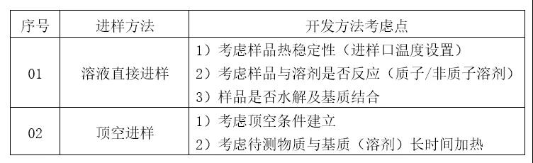 ③进样方式:溶液直接进样、顶空进样。