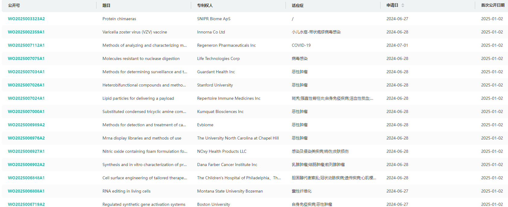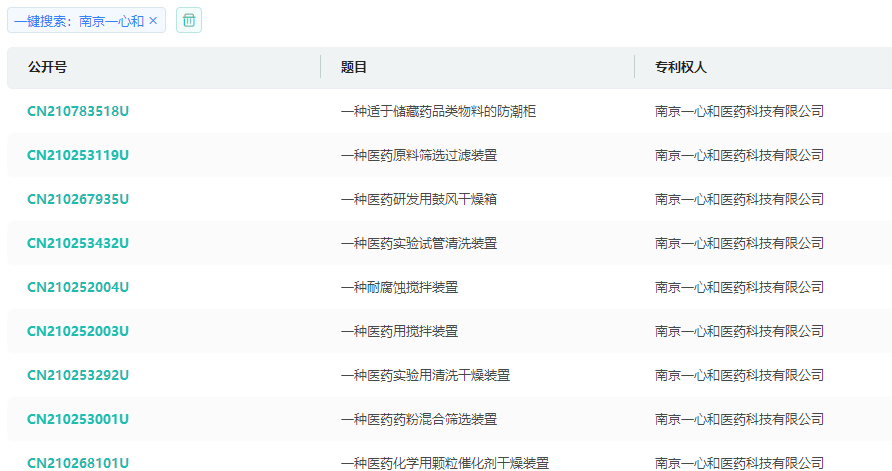 南京一心和全球医药专利查询(部分)