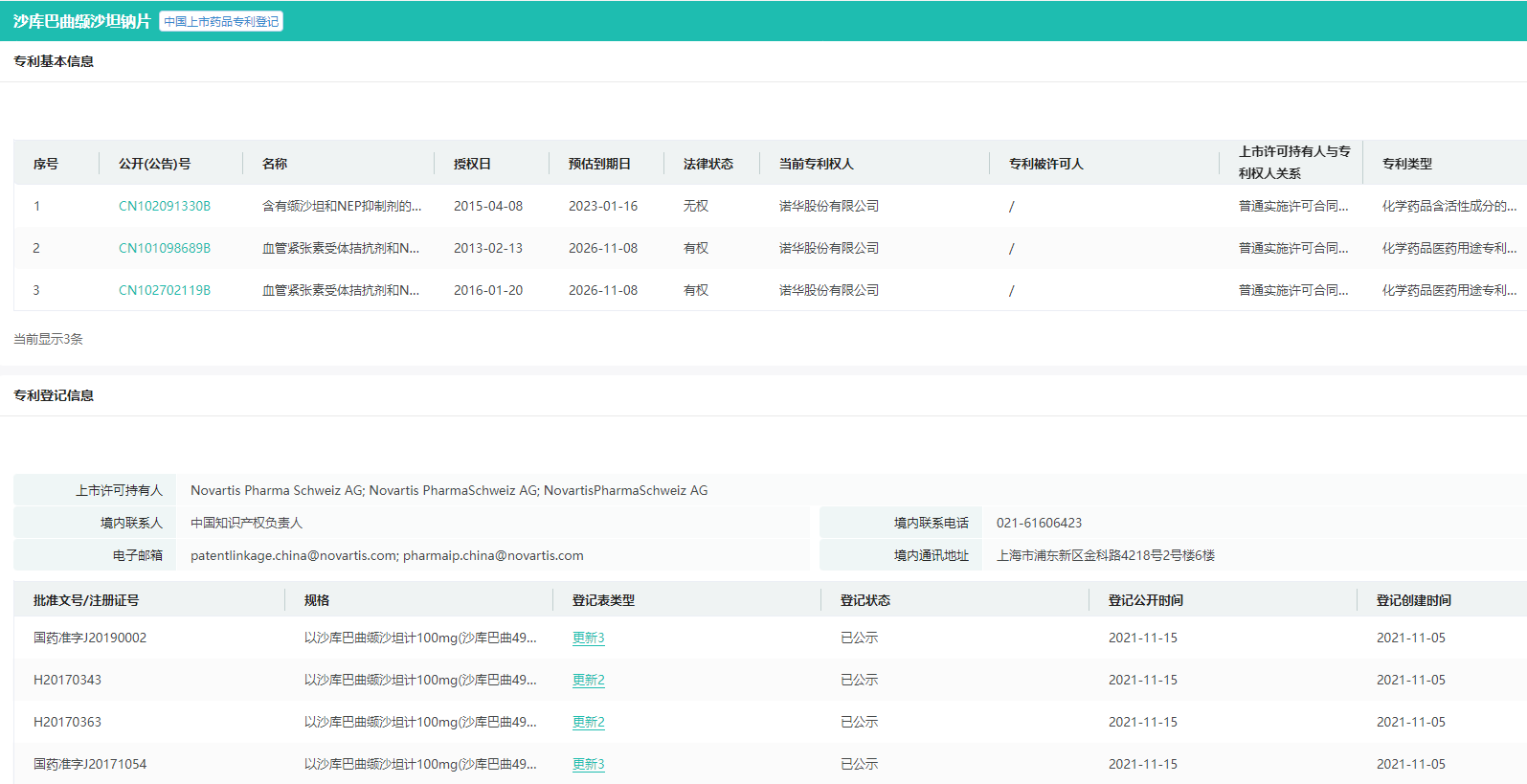 沙库巴曲缬沙坦钠片-专利基本信息