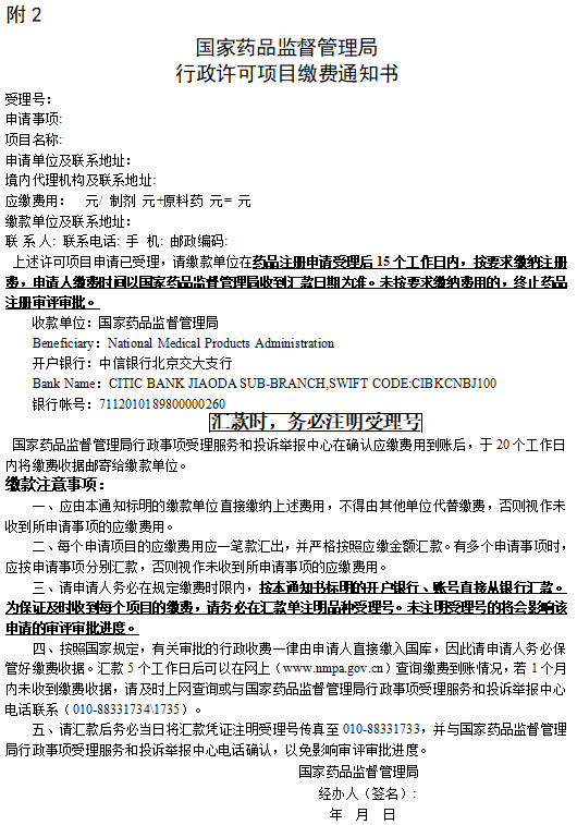 2.国家药品监督管理局行政许可项目缴费通知书