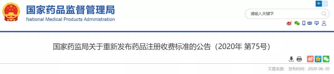 2020年:国家药监局关于重新发布药品注册收费标准的公告(2020年 第75号)。