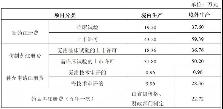 药品注册收费标准