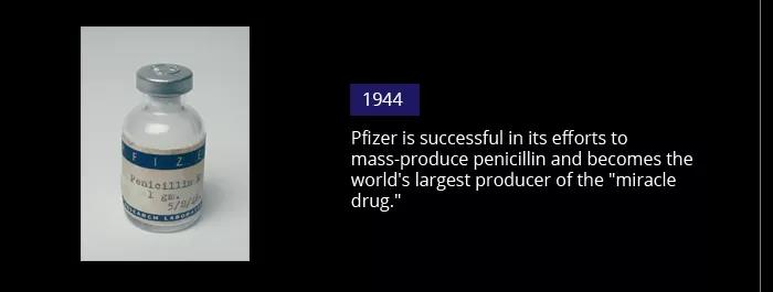 南北战争时期,辉瑞向北军提供吗啡、酒石酸等产品,成为北军主要药品供应商,发了“战争财”。一战时期,辉瑞作为当时“肥宅快乐水”可口可乐的原材料柠檬酸的主要供应商,捞得真正的“第一桶金”,但那时的辉瑞还只能算是一家化工企业。直到二战时期,辉瑞用自己的发酵工艺实现了青霉素的量产,其在抗生素领域的研发便一发不可收拾。1949年,辉瑞的科学家在公司成立百年之时,提取出了土霉素,这是辉瑞第一款属于自己的抗生素,也是辉瑞首个自主研发的药品。自此,辉瑞便正式成为一家药企。