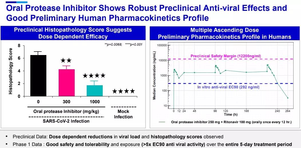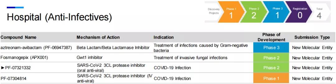 在抗感染领域,辉瑞开发的小分子口服COVID-19疗法PF-07321332是一款3CL蛋白酶抑制剂,3CL蛋白酶在多种冠状病毒的生命周期中起到重要作用。在临床前研究中,该疗法对SARS-CoV-2表现出有效的抗病毒活性,且对于多种冠状病毒以及已知的SARS-CoV-2变异毒株也具有抗病毒活性,1期临床试验数据显示它具有良好的安全性和耐受性,在为期5天的疗程中,药代动力学数据显示该口服药物具有良好的安全性、耐受性和抗病毒效果。辉瑞已经在2021年7月启动2/3期临床试验,预计在2021年第四季度在美国递交EUA申请。