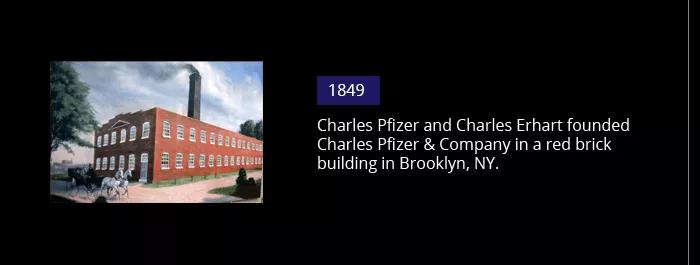 谈到辉瑞(Pfizer),常会提到其“宇宙第一药厂”的称号。1849年,查尔斯•辉瑞和查尔斯•厄尔哈特表兄弟俩在纽约布鲁克林的一座红砖楼房中创立了查尔斯•辉瑞公司,二人用2500美元启动资金,开启了辉瑞的传奇之旅。