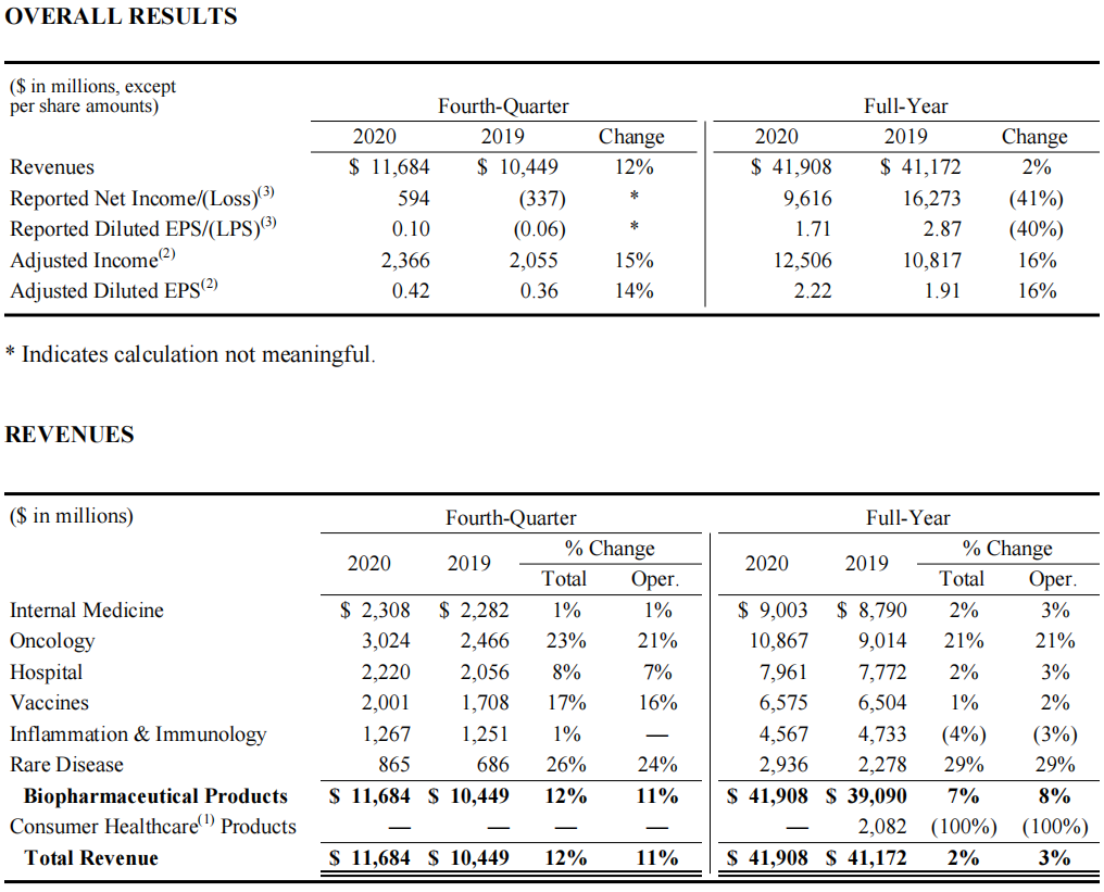 此外,肺炎球菌疫苗Prevenar 13(沛儿13)业绩为58.5亿美元,与2019年持平,但在美国以外的地区实现了11%的增长;生物类似药业绩达15.27亿美元,同比增长68%。